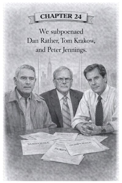 As part of the discovery process, we subpoenaed the evening news anchors who had delivered the events of that day to the nation — Dan Rather, Tom Brokaw, and Peter Jennings.